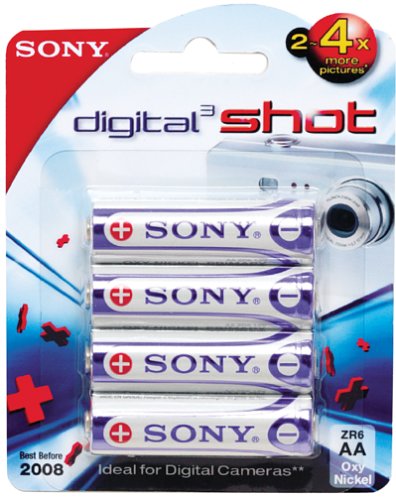 Sony Oxy Nickel Primary AA 4 Packs are ideal for digital cameras and approaches the performance of the NiMH without the cost. Essential accessory for the rapidly growing DSC market. Innovative packaging and cell design. 2-4 times more powerful than an Alkaline battery.